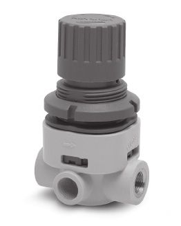 Микрорегуляторы давления. Серия T. Регуляторы давления из технополимера Серии T доступны с присоединением G1/8 и G1/4 (латунная резьба). Исполнение без сброса давления поставляется только по заказу. Все модели регуляторов оснащены клапаном быстрого сброса (VS). Такое исполнение обеспечивает повышенный расход при сбросе давления, если регулятор устанавливается между распределителем и цилиндром (или емкостью).